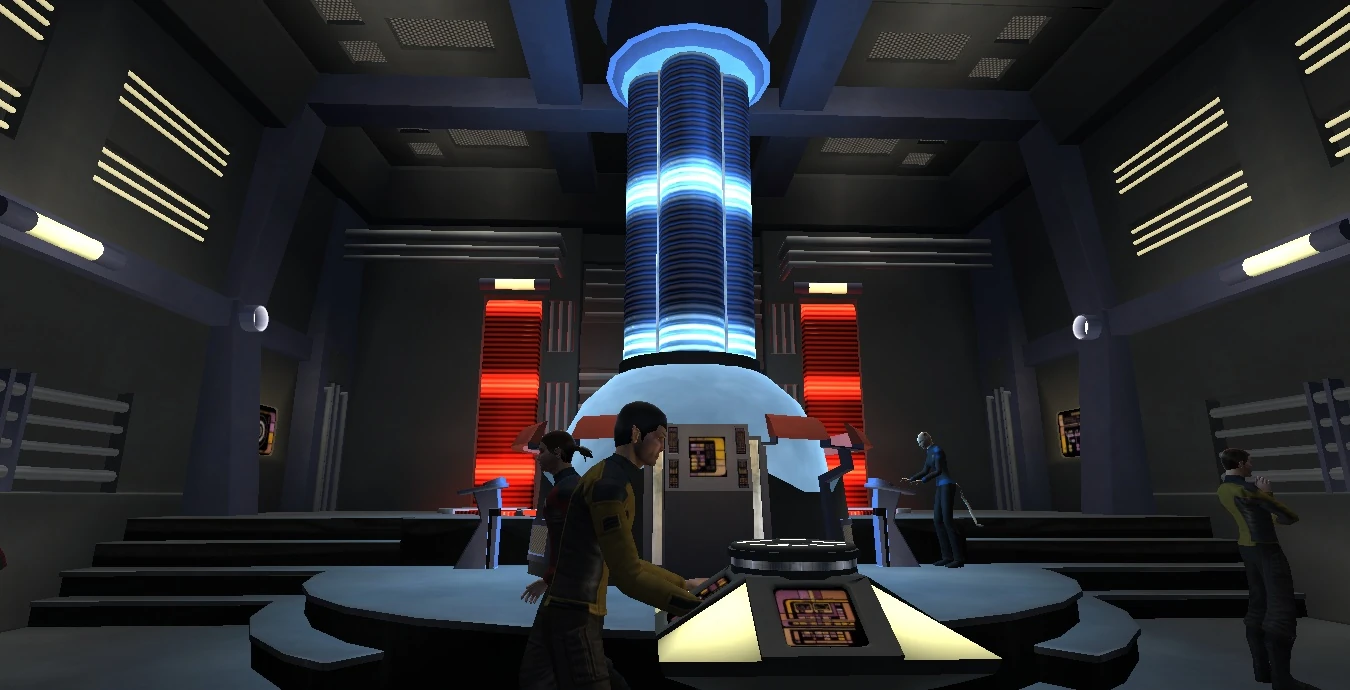 Located toward the rear of the ship, Main Engineering spans two decks, with the Class-7 warp core at its center. A center console immediately in front of the core allows for direct access to most of the ship's systems, and can be used as an impromptu bridge control if necessary.
