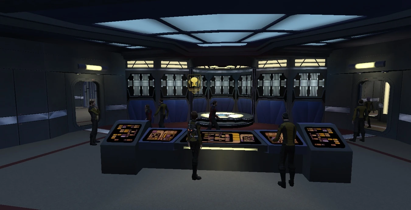 The other four stations (two on either side) can be adjusted as needed, however they are typically divided into Engineering, Science/Medical, Operations, and Tactical/Security. There are also additional control stations at the rear of the bridge for secondary systems.